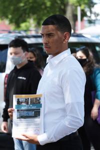 Miami Jackson Senior High School graduate Fernando Salgado, 18, passing out petitions in front of the Allapattah Branch Library. (Courtesy of Urban Impact Lab)