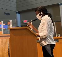 Miami Jackson Senior High School graduate Jayla Cannon speaking in favor of saving the Allapattah Branch Library during a Miami City Commission meeting. (Courtesy of Urban Impact Lab)