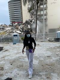 She hopped in her car, made the 45-minute drive to Surfside and offered her services as a nurse to those on the scene. Rescuers welcomed the assistance, allowing her to treat mild injuries of residents who had escaped.