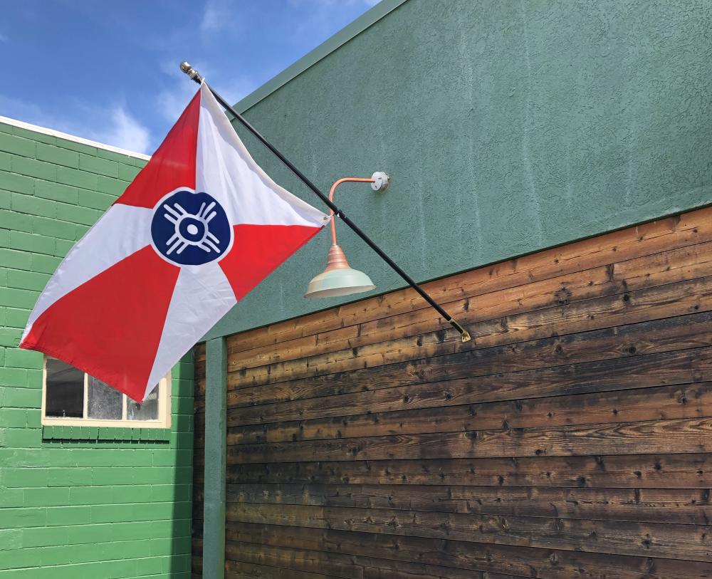 There are plenty of versions of the flag, many sized so that you can claim your own, too. We call this flag branded merchandise “flag swag” and you’ll find it in most of our Wichita museum gifts shops as well as for sale at local businesses, from boutiques including Bungalow 26, Generations Antiques and Artisans, Lucinda’s, The Health Connection, The Workroom and Urban Interiors to restaurants and breweries.
