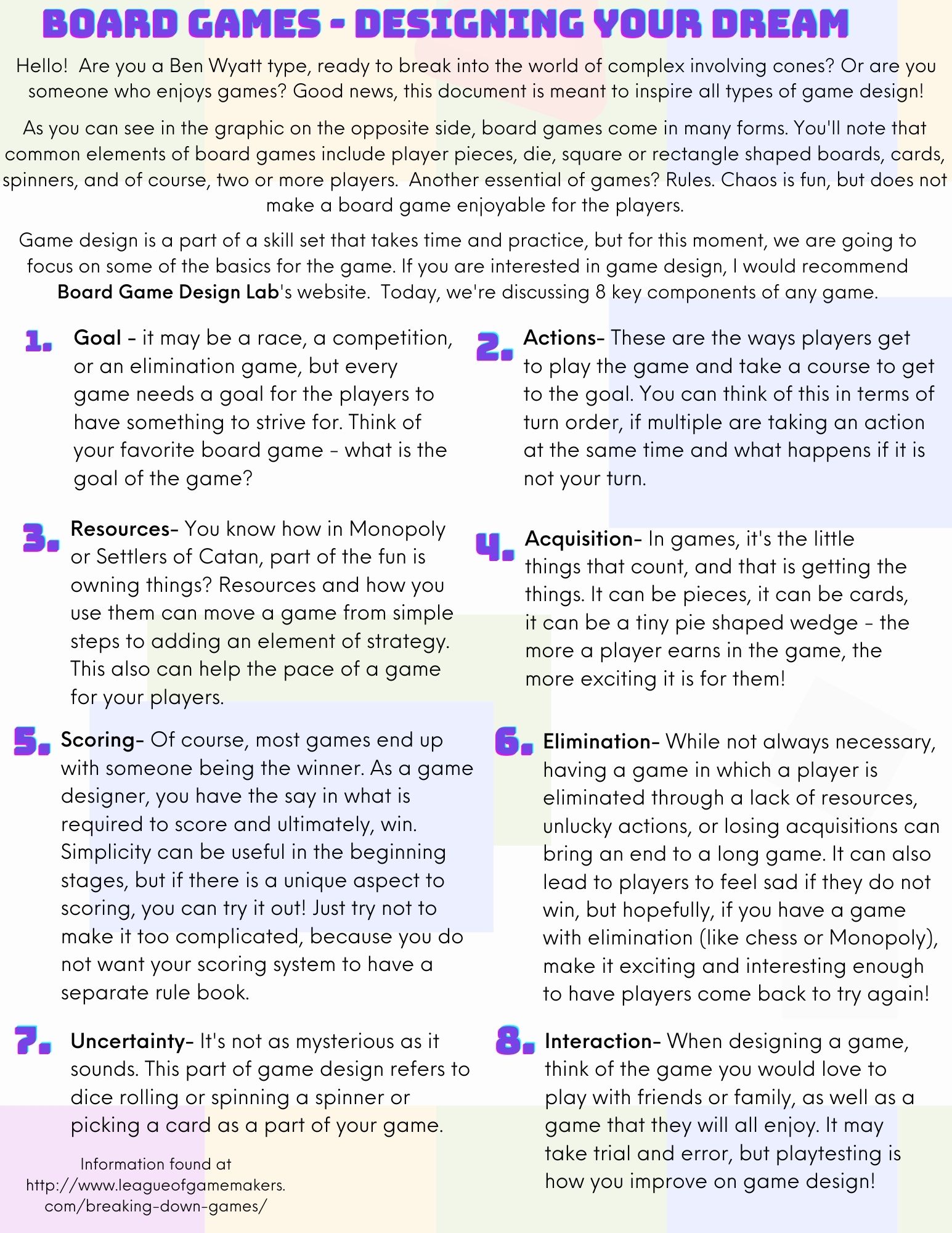 - A list of board games available for checkout at the library