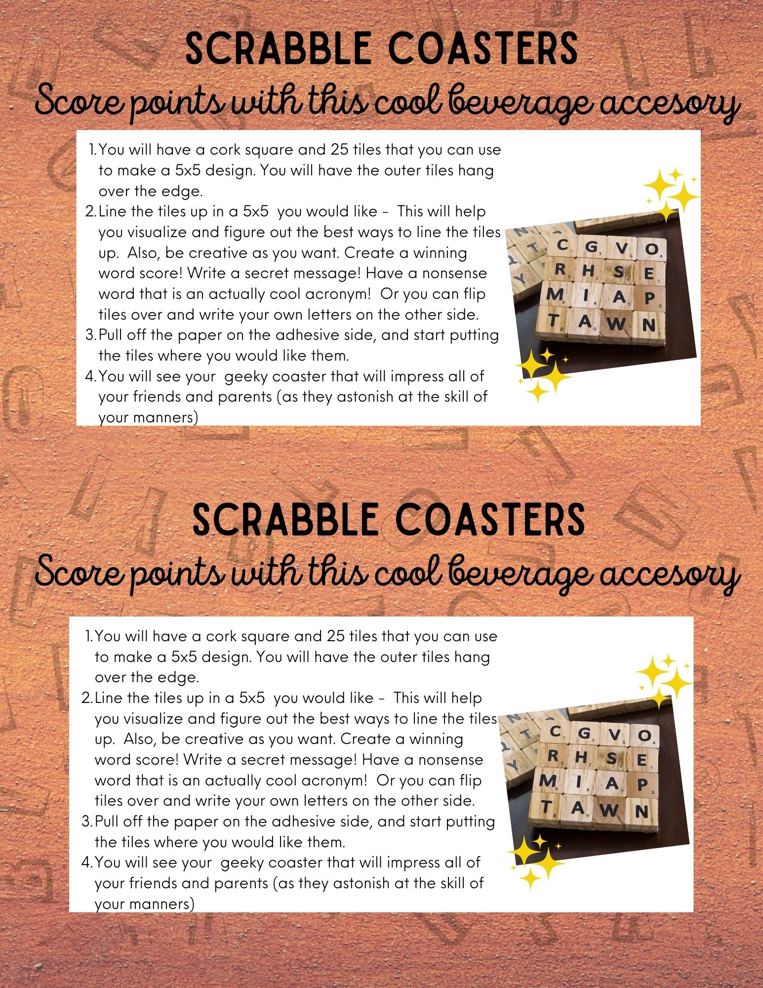 Scrabble Coasters Instructions