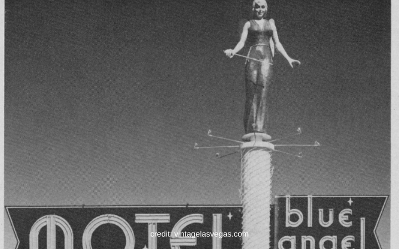 The 15-foot iconic statue dates back to 1957 and The Blue Angel Motel. It was created by famous Las Vegan Betty Willis, who also designed the Welcome To Las Vegas sign in the 1950s.Â