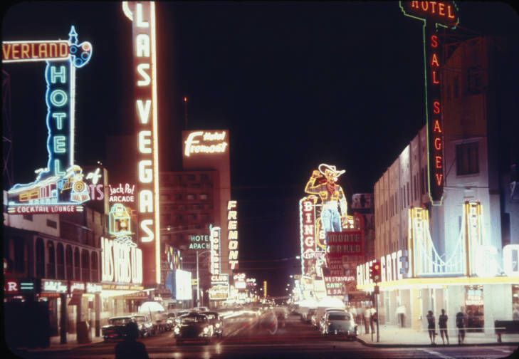 Millions of visitors travel to the Fremont Street Experienceand downtown Las Vegas annually, and this large sign provides them a glimpseinto the past. Before there was a zip line or a 1,375-foot-long canopy with 16.4 million pixels, Fremont Street served as the heart of Las Vegas. It was where the city’s first hotel opened in 1906, and it also became a center ofcommerce for the growing city.