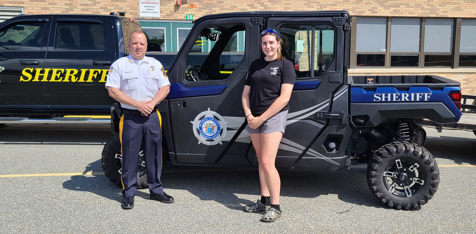 Ms. Gabrielle Singer, a graduating Senior from the Sussex Technical School designed the winning submission. “This was a project that I felt was important to the local students as they were able to see their hard work used in a “real life” application” said Sheriff Strada. The Polaris UTV will be used by the Sussex County Sheriff’s office in the event of a rescue in areas of the county that are more difficult to access.