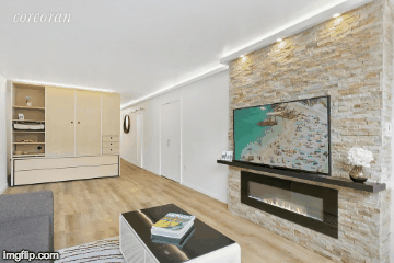 The Ori system separates the West Village apartment's living room from the dining and kitchen area. A modern bathroom, state of the art kitchen and a gas fireplace are included in the freshly renovated space.