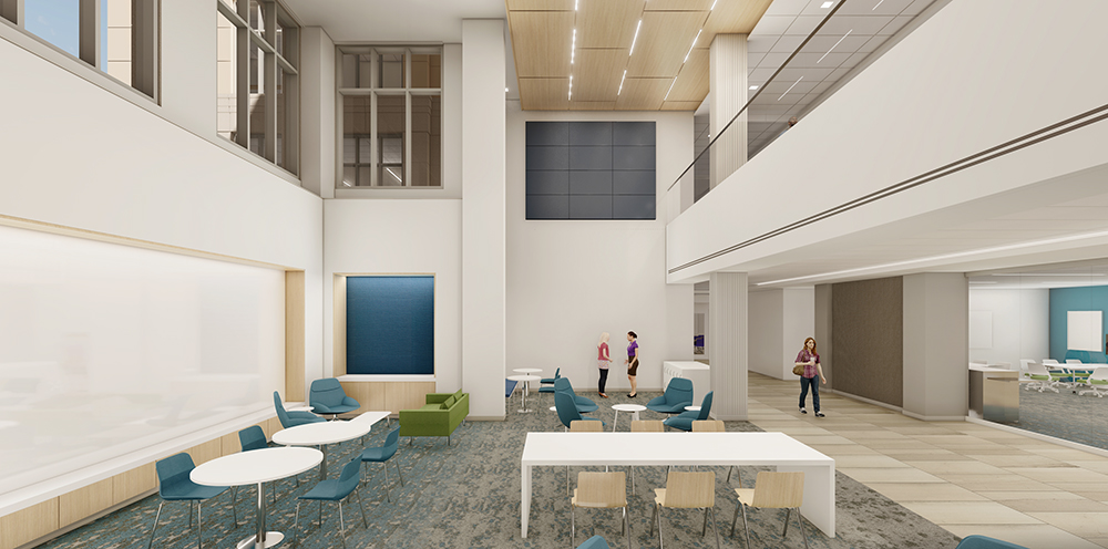 Spaces in the north academic wing, such as an inter-professional lounge and a café where students will be able to collaborate, will help extend students’ learning outside of the classrooms.