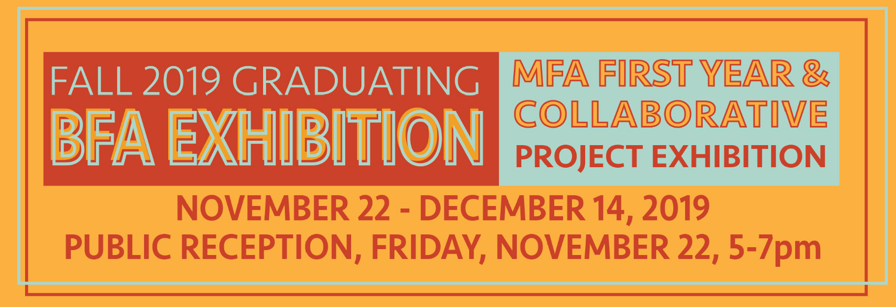 The Fall Graduating BFA Exhibition and the MFA First Year and Collaborative Project Exhibition open with a reception 5 to 7 p.m. Friday, Nov. 22 and will remain on view in the McDonough galleries through Dec. 14.