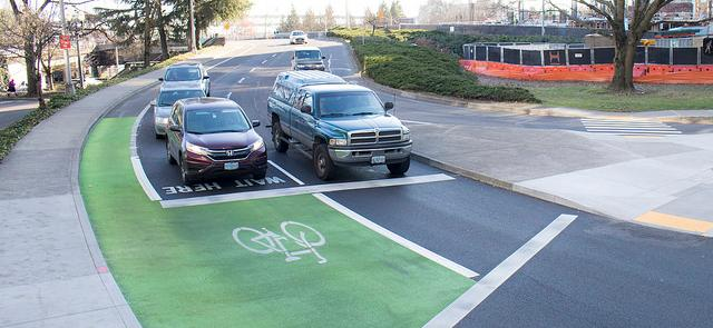 “I appreciate the bike box at the intersection of First and Main,” said one person biking by on their commute, “It makes me much more visible, putting me directly in the driver’s vision.”