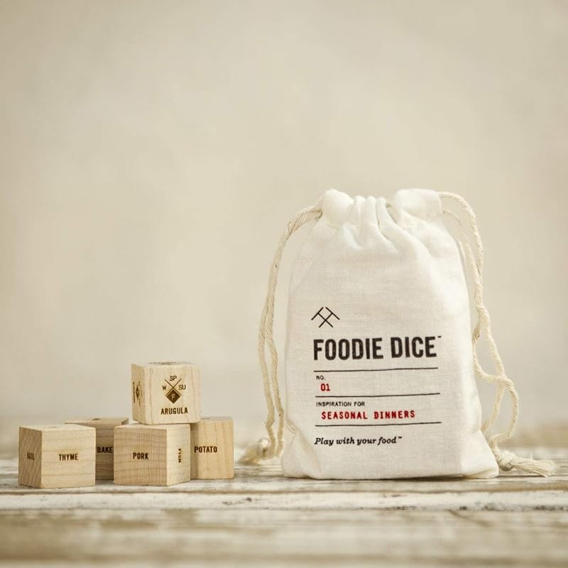 Foodie Dice® No. 1 Seasonal Dinners, $24 — Not sure what to cook up for dinner? These Foodie Dice will help you shake things up and provide inspiration for crafting easy, seasonal meals at home. Simply select the five primary dice, add a seasonal veggie die and roll. Then you can head out to the store or use what you have at home. It's a fun and delicious approach to dinner.