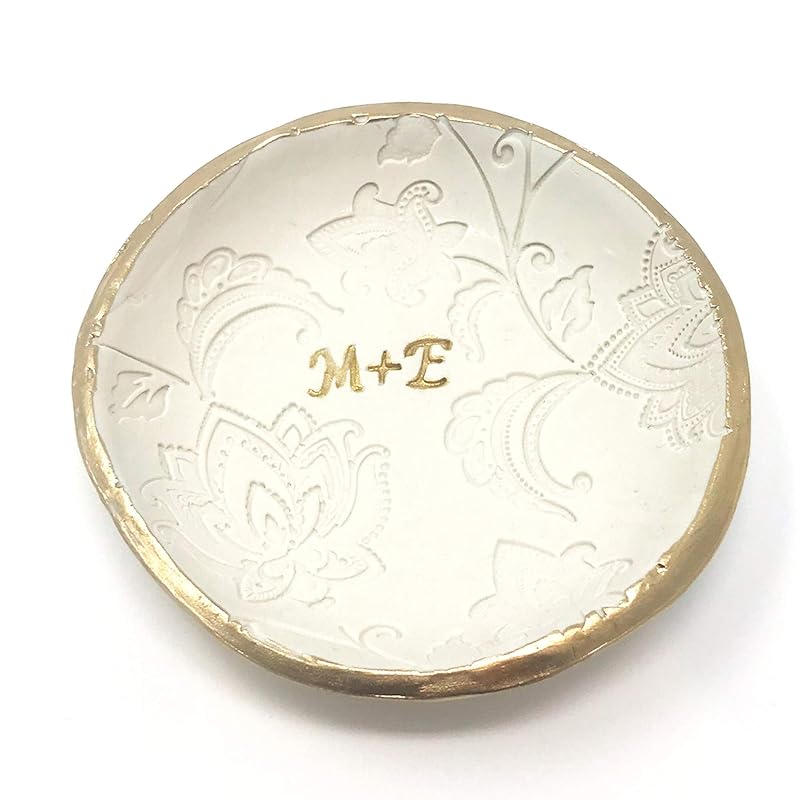 Personalized Jewelry Dish, $19 — Set this handmade dish on your bedside table to hold rings, trinkets and other small jewelry items. It's the perfect gift for any girl or woman in your life whom you want to make feel special, and you can customize the elegant dish with initials, names and words.