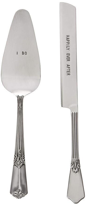 There is a ton to look forward to on the big day — and wedding cake is no exception! That's why this vintage-style silver serving set stamped with "I Do" and "Happily Ever After" is a unique engagement gift that any couple will love.