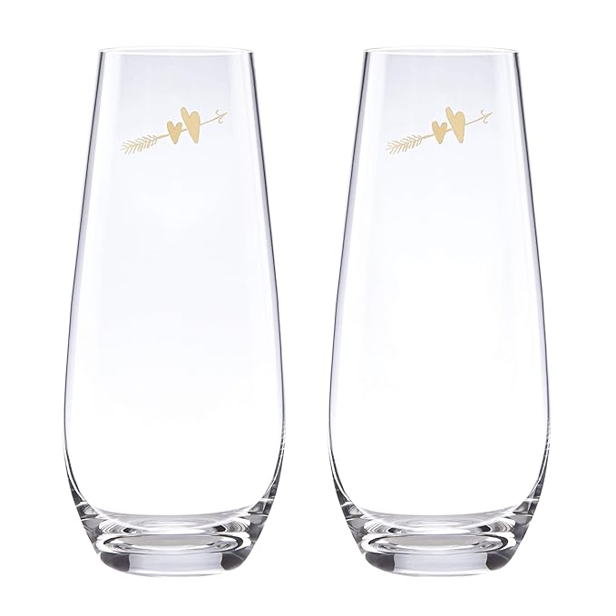 Toast to love with these gold heart-embellished champagne glasses. The sweet and simple design will be a special memento that will be treasured for years to come.
