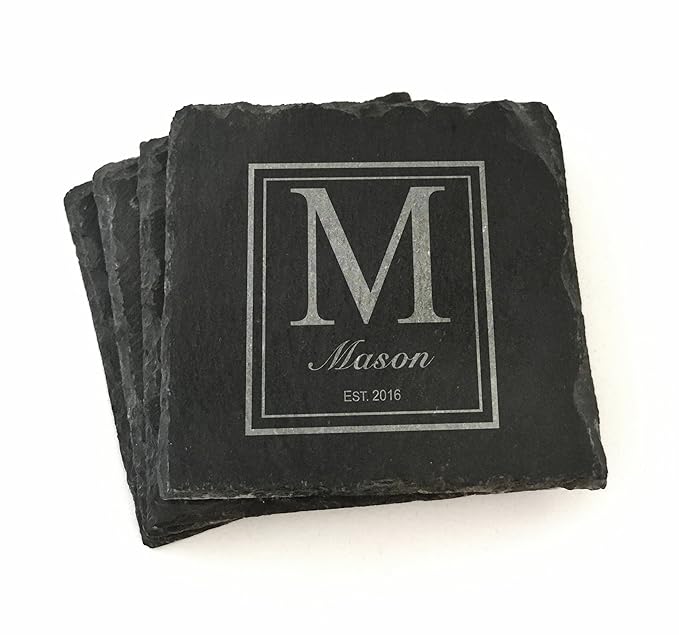 Customized coasters are a practical gift for an engagement or housewarming party. Great for everyday use and special occasions, the slate coasters will make your gatherings a little more personal and they will last for years to come.