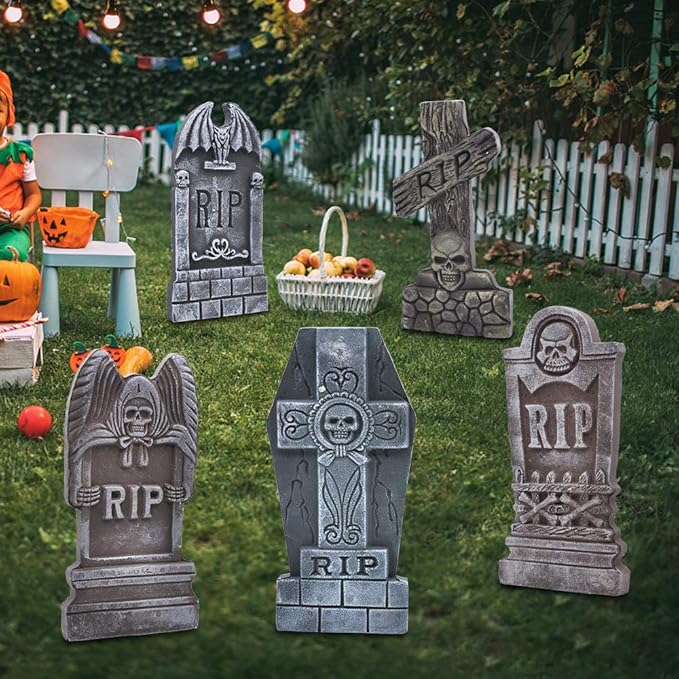 Turning your front yard into a cemetery will totally up your spook factor — especially if you get your hands on these realistic tombstones. With five unique and horrifying designs, they're a grim addition to complete your creepy look. You can also sprinkle some skulls and bones to make it really seem like a hair-raising graveyard. And if you're really looking to stand out, why not add these skeleton flamingos?
