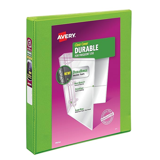 This super durable binder should last you the entire school year— and maybe longer! The 3-ring binder resists tearing and splitting, can store from 120 to 925 sheets and is complete with two interior pockets. You can even customize your cover and spine at avery.com/templates.