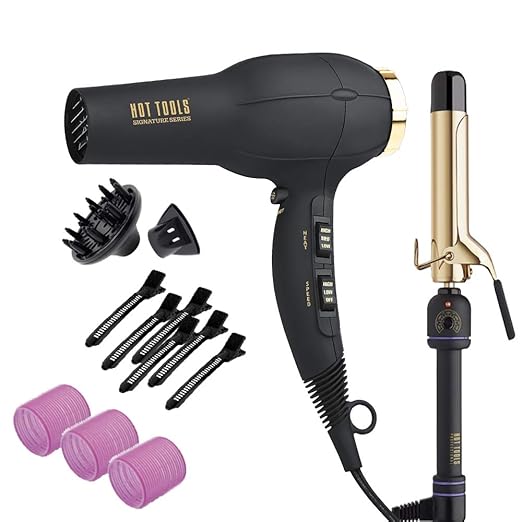 Get salon-worthy hair right at home with the help of this signature styling set. It includes a dryer that will reduce frizz and and give you shiny, healthy-looking hair, a curling iron to create glossy curls and plenty of separating clips, rollers and styling accessories.