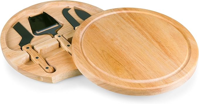 This swivel-style circular cheese cutting board is a cute gift that one lucky receiver is sure to appreciate. Not only is the cutting board super durable, it also secretly holds four stainless steel cheese tools inside.