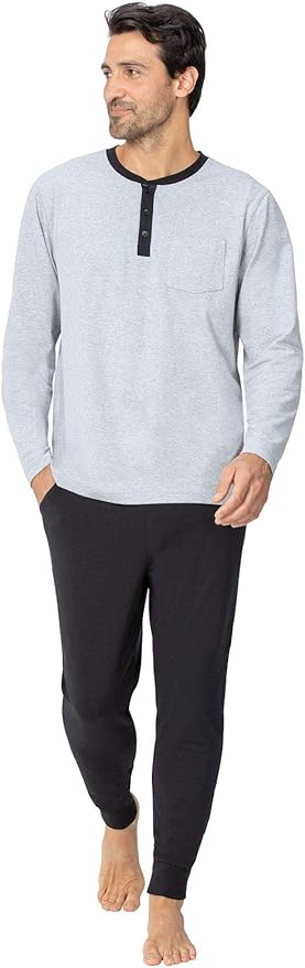 PajamaGram Men's Pajamas Set Comfy, $27.49 — It doesn't get more comfortable than this casual and cool pajama set for men. The soft cotton set features a long-sleeve henley shirt and full-length jogger pants with a drawstring waist.