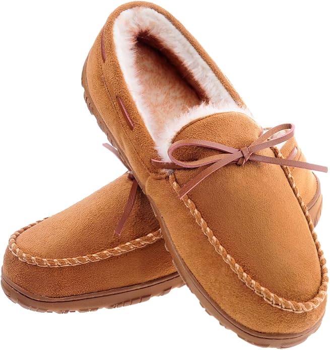 Mens Slippers Moccasins Slippers, $29.69 — You can't go wrong with these durable slippers, which feature slip-resistant rubber soles. The ultra-comfortable slippers are great for wearing around the house but can also be worn in outdoor environments or while driving.