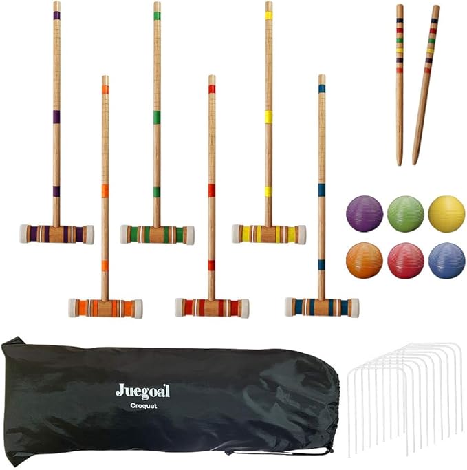 Six Player Croquet Set with Drawstring Bag, $43.99 — Croquet might remind you of tea parties and scones, but it's actually extremely fun to play, especially if you'll have kids running around the yard at your celebration. Six people can play this version, but you can always buy two sets if you're expecting a larger crowd.