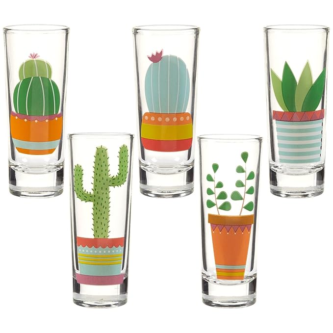 No Cinco de Mayo is complete without celebratory tequila, and these festive cacti shot glasses are the perfect way to indulge. Decorated with different succulent plant prints, the high quality glasses will add a splash of color and fun to your party.