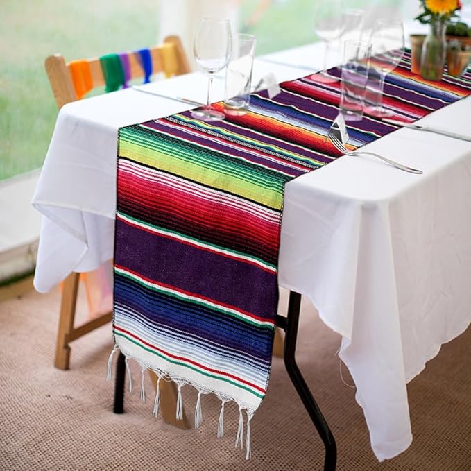 It wouldn't be a fiesta without bringing some of Mexico's rich culture to the table— literally! This vivid serape table runner is hand-woven, adding a colorful, authentic touch to your dining table.