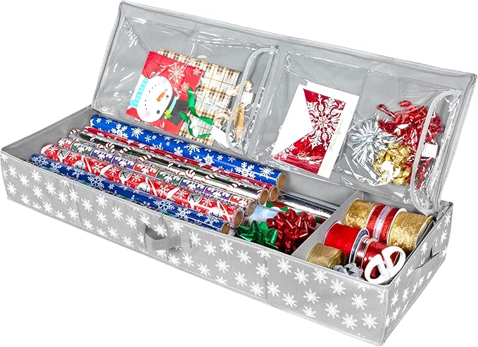 Looking for some holiday wrapping storage that you can slide right under your bed? Check out this organizer with compartments for all your holiday gift dressings. It will keep your gift wrapping wrinkle- and rip-free, also protecting bows, cards and ribbons from damage.