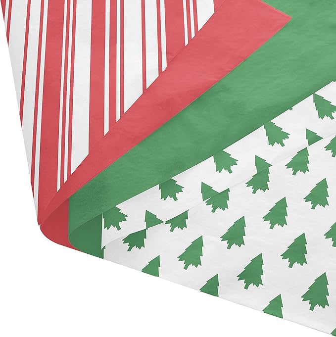 Add some style to your holiday gifts with this holiday tissue paper that features patterns such as Christmas trees and candy canes, as well as solid colors of red and green. Its also recyclable and eco-friendly.