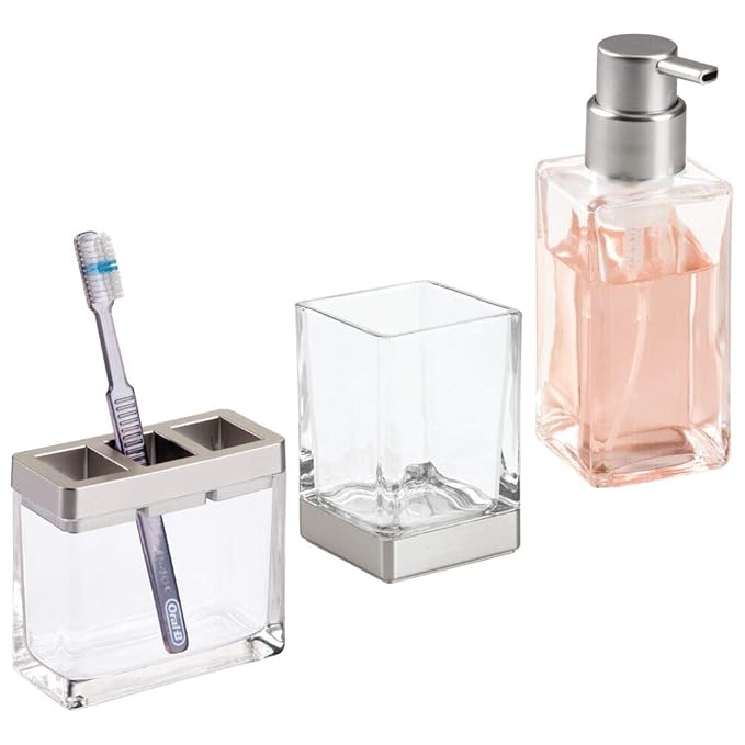mDesign Square Glass Bathroom Vanity Countertop Accessory Set, $19.99