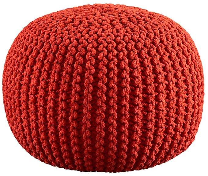 Enhance your room with this one-of-a-kind seating option. The hand-knitted cable pouf can work overtime as an ottoman or foot rest and is available in a variety of bright or neutral shades.