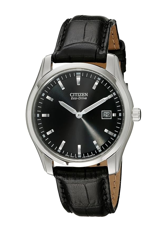 Help your father step up his watch game with this revolutionary timepiece. The stainless steel watch features a bold black sun-ray dial with luminous hands and a date window. The watch is also fueled by light, so it never needs winding or a new battery.