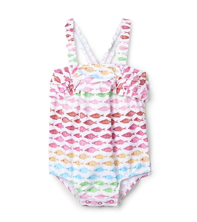 If your baby is planning on hitting the water this summer, then they need this playful ruffle swimsuit for the water. It's perfect for the playing in the pool, swimming at the beach and even sprinklers in the backyard. Discounts may vary based on size and color.