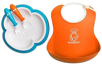 This feeding set is great for your toddlers who are learning how to feed themselves. The comfortable bib features a deep spill pocket to catch any mess, the baby plate is shaped like a three-leafed clover to help children scoop up food and the utensil set is specially designed for little hands.