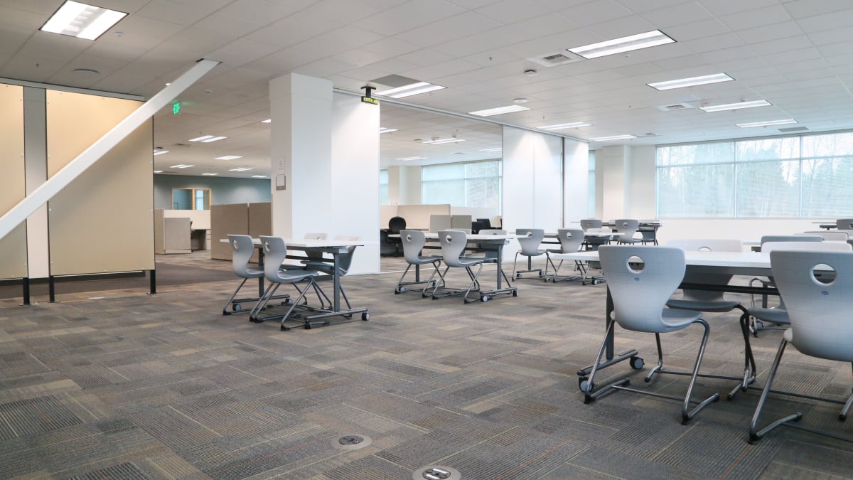“A challenge that we had was how to create a space with movable walls, movable partitions, that allows us to open up or partition off spaces, as we need them flexible and yet still create the feel of learning spaces -- we don't call them classrooms -- that can be either discrete from each other, or open up to be combined with each other. ”